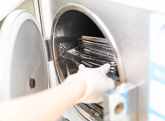 歯科では外科的処置を伴いますので、診療空間を清潔にしておくことが求められます。治療器具をはじめ、患者様が使うものには常に細菌感染対策を講じることが必要です。当院では、治療器具の消毒・滅菌、備品の交換を徹底しています。歯を削るタービンは通常の歯科診療所よりも多めに用意し、診療の際に不足するといったことがないよう備えています。