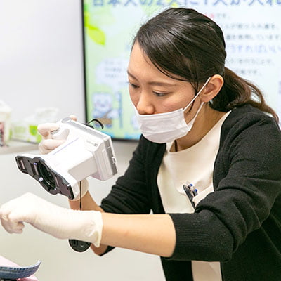 治療の際には、精密な診査・診断のために、お口の中を精査することが必要です。できるだけ高性能な機器を使って、お口の状態の検査にあたっています。専門用語は使わずに、分かりやすい言葉を心がけて説明を行いますので、何かご不明なことがございましたら、お気軽にご相談ください。